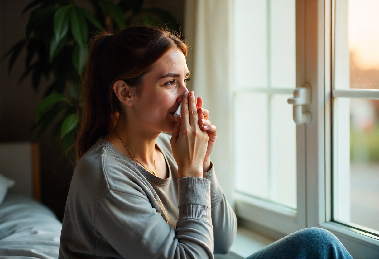 Adult experiencing mild sinus congestion at home during sinusitis