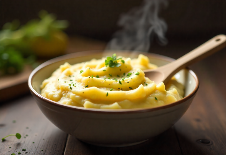 - Gradually add milk or reserved cooking water and olive oil/butter, mashing until smooth and creamy.
