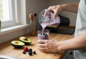 Because it contains protein, fibre, and fat, it’s far more satisfying than a fruit-only smoothie and helps prevent mid-morning energy crashes.