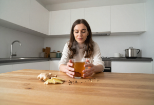 Slice one to two inches of fresh ginger and steep it in hot water for five to ten minutes. Let it cool slightly before drinking.