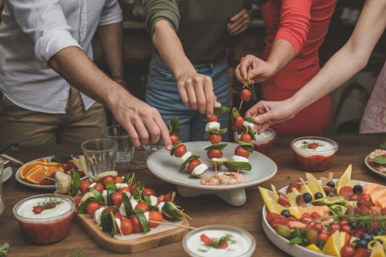Creamy dips are a party essential, but traditional ones can be loaded with mayonnaise, sour cream, or cheese. Making a Greek-yogurt-based dip is a simple swap that cuts calories dramatically. Mix yogurt with garlic, dill, lemon, or roasted red pepper for extra flavour. Most Greek yogurt dips stay around 50–70 calories per serving, compared to 150–200 for creamy ranch or spinach dip. Paired with colourful veggie sticks or whole-grain crackers, it’s a light option everyone will eat without noticing it’s healthy.