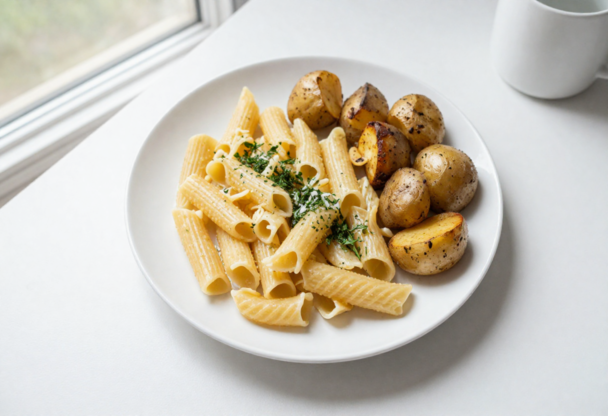 - Example: whole-grain pasta with grilled chicken and olive oil, or a boiled potato with salmon and veggies.